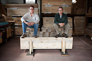 At this point we have let 1000 lbs sit for a good 15 minutes without so much as one creak or splinter coming from the casket. Mixed emotions of accomplishment and disappointment fill the room. We started the day fully expecting to destroy one of our caskets and capture the moment on film--learning something about our design and the properties of wood under stress. We proceed to seat both Dave and myself on top of the patio bricks adding another 400 lbs to the casket!